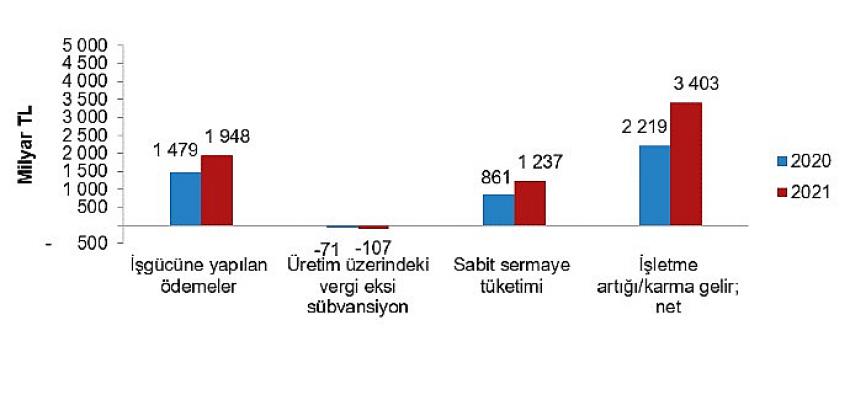 Bir önceki yılın aynı ayına göre, ulaştırma ve depolama hizmetlerinde 121,28, konaklama ve yiyecek hizmetlerinde 81,72, bilgi ve iletişim hizmetlerinde 56,29, gayrimenkul hizmetlerinde 77,05, mesleki, bilimsel ve teknik hizmetlerde 60,93, idari ve destek hizmetlerde 80,34 artış gerçekleşti.