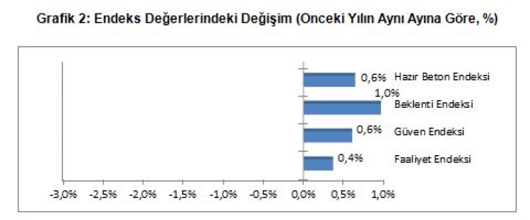 Geride bırakılan Kasım ayında tüm endeksler geçen yılın aynı ayına göre artış gösterdi. En fazla yükseliş Beklenti Endeksi’nde iken en az artış Faaliyet Endeksi’nde yaşanmıştır. Güven Endeksi’nde ise ılımlı bir artış gözlenirken, tüm endekslerdeki yükseliş birleşik Beton Endeksi’ni de yukarı çekti.