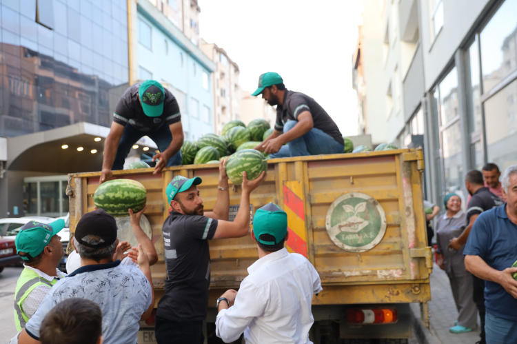 Bursa Büyükşehir Belediye Başkanı Mustafa Bozbey’in talimatıyla Mustafakemalpaşalı ve Karacabeyli çiftçilerden değerinde alınan kavun ve karpuzlar, kentin farklı noktalarında vatandaşlara ücretsiz olarak dağıtılmaya başlandı.