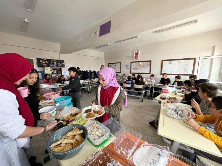 Pazaryeri Gündem / BİLECİK (İGFA) - Pazaryeri ilçesinde Tutum Yatırım ve Türk Malları Haftası etkinlikleri kapsamında Şehit Zafer Koyuncu İmam Hatip Ortaokulu öğrencileri, evlerinden getirdikleri birbirinden güzel yiyecekleri arkadaşları ile paylaşmanın mutluluğunu yaşadı.
