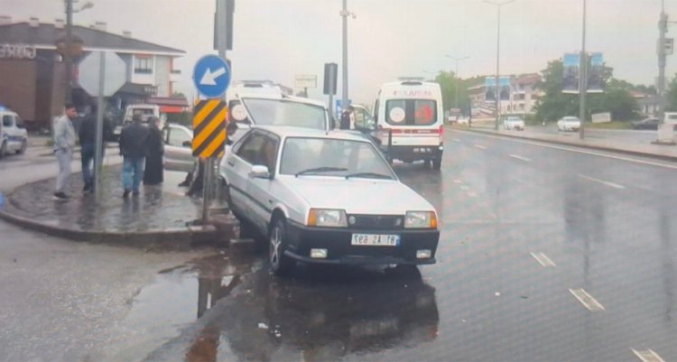 DÜZCE (İGFA) - Bahçeşehir bağlantı yolu üzeri Metek Toki ışıklı kavşağında E.D. yönetimindeki otomobil D.B. yönetimindeki başka bir otomobil ile çarpıştı.