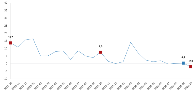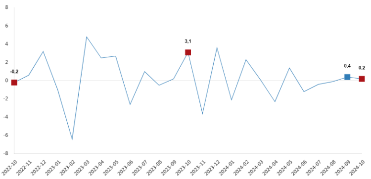 Hizmet üretim endeksi aylık değişim oranı (yüzde ), Ekim 2024