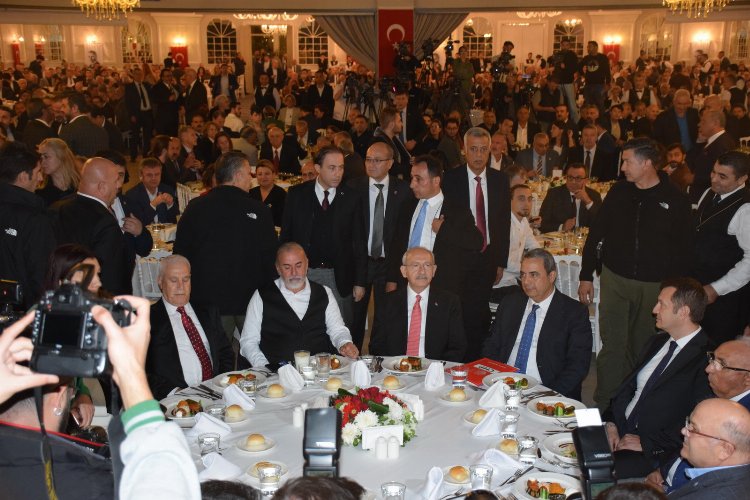 BURSA (İGFA) - CHP Genel Başkanı Kemal Kılıçdaroğlu, Bursa’da sanayici ve iş insanlarıyla akşam yemeğinde bir araya geldi. Bursa İl Başkanı İsmet Karaca, Genel Başkan Yardımcısı Prof. Dr. Lale Karabıyık, Bursa milletvekilleri Nurhayat Altaca Kayışoğlu, Orhan Sarıbal, Yüksel Özkan ve Erkan Aydın’ın hazır bulunduğu toplantıda, başta Faik Öztrak olmak üzere CHP’nin üst düzey yöneticileri de Kılıçdaroğlu’na eşlik etti. Podyum Davet’in bin 300 kişilik salonunda gerçekleşen toplantıya Bursa iş dünyası da yoğun ilgi gösterdi.