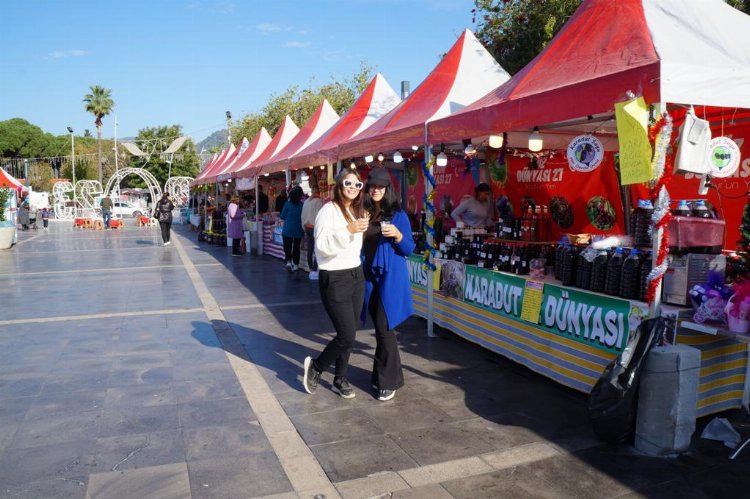 Ata SEVGİ - AjansCANKA / MUĞLA (İGFA) - Marmaris Belediyesi yeni yıl öncesinde ilçenin ana caddelerini rengarenk süslerken, 19 Mayıs Gençlik Meydanı’nda açılan yeni yıl pazarı halktan büyük ilgi görüyor.