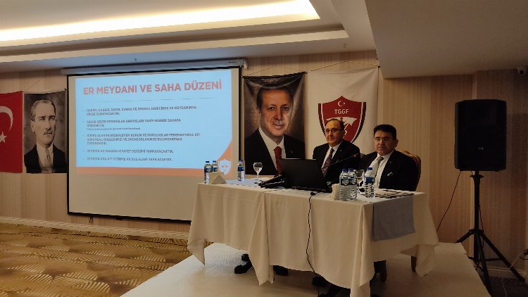 Tural ŞAHBAZLI / KAHRAMANMARAŞ (İGFA) - Kahramanmaraş'ta iki gün sürecek çalıştaya Türkiye Geleneksel Güreşler Federasyonu Başkanı İbrahim Türkiş, Onikişubat Kaymakamı Serkan Keçeli, Göksun Belediye Başkanı Hüseyin Coşkun Aydın, Kahramanmaraş Gençlik ve Spor İl Müdürü Cemil Boz, Kayseri Gençlik ve Spor İl Müdürü Ali İhsan Kabakçı, Türkiye Geleneksel Güreşler Federasyonu Başkan Yardımcısı Şahin Hopur ile federasyon yönetim kurulu üyeleri, Avrupa ve Dünya Olimpiyat Şampiyonları Mehmet Esenceli, Harun Doğan, Sebahattin Öztürk, Arif Kama, Ayhan Taşkın, Merkez Hakem Kurulları ve Federasyon diğer kurulları, başpehlivanlar, güreşçiler ve cazgırlar katıldı.