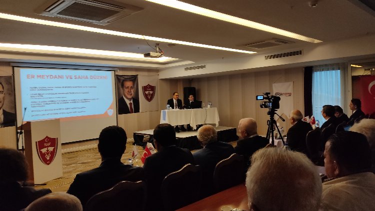 Daha sonra kürsüye gelen Türkiye Geleneksel Güreşler Federasyonu Başkanı İbrahim Türkiş yapmış olduğu konuşmada, Kahramanmaraş’ta güzel bir ortamda bir arada olmanın mutluluğunu yaşadıklarını belirterek, "Federasyon olarak Yağlı Güreş çalıştayını yaptık. Yağlı Güreş çalıştayında gerçekten Türkiye yağlı güreşini yeniden yapılandıracak ve gerçekten herkesi çok heyecanlandıran bütün dengeleri sarsacak bir takım kararlar aldık. Bugün de burada Karakucak, Şalvar, Aşırtmalı Aba, Kapışmalı Aba, Kuşak Güreşleri ile ilgili sorunları hep beraber inşallah bugün tartışacağız. Artık geleneksel güreşler eskisinden çok daha farklı olacak. Herkesin sesini dinleyeceğiz. Herkesin düşüncelerini dinleyeceğiz. Ve sizin düşünceleriniz bizlere ışık olacak arkadaşlar. O yüzden bu toplantıyı yapıyoruz. Kesinlikle yani dostlar alışverişte görsün amacıyla yapılmış bir toplantı değil bu" diye konuştu.