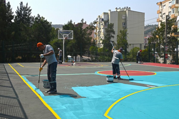 Karabağlar Belediyesi Fen İşleri Müdürlüğü ekipleri parklarda bulunan basketbol sahalarının bakım, onarım ve boyama çalışmalarına devam ediyor. Esentepe Mahallesi’nde bulunan çocuk parkı ve Muammer Akar Mahallesi Nisa Serezli Parkı’nda bulunan basketbol alanında çalışmalar tamamlanarak sporseverlerin hizmetine sunuldu.